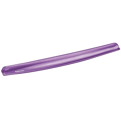 The fellowes crystal gel purple mouse pad wrist support has been ergonomically designed to conform to the user s wrists redistribute painful pressure points and ensure maximum support for all day comfort.