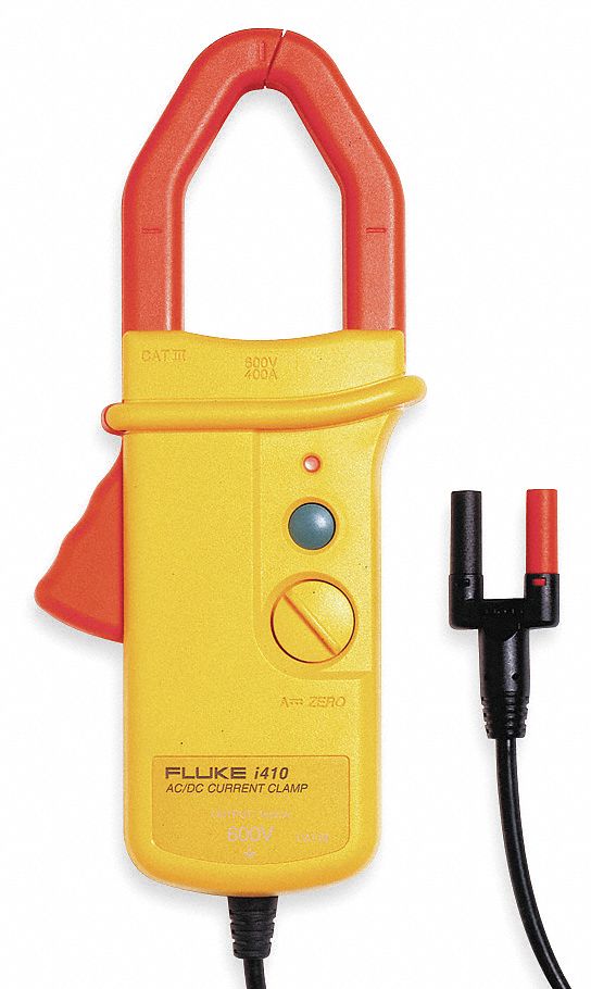 The fluke i410 ac dc current clamp expands the functionality of digital multimeters and measures up to 400 amps for both ac and dc current.